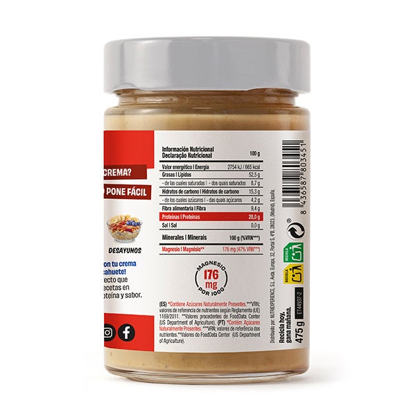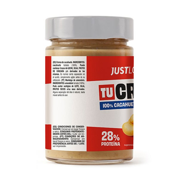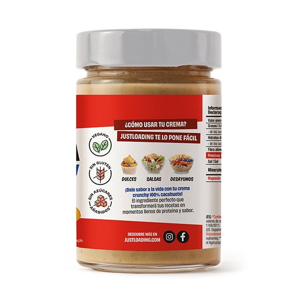 Manteiga de amendoim crocante: Creme de amendoim saudável elaborado 100% à base de amendoins torrados e pedaços destes para dar um toque crocante
