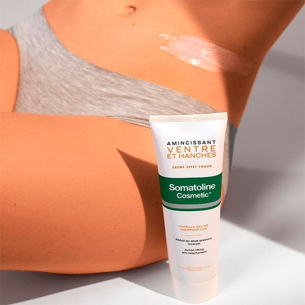 Somatoline Cosmetic Barriga e Quadris Creme Efeito Calor é um creme termoativo rico em textura que se massageia facilmente e não deixa resíduos.