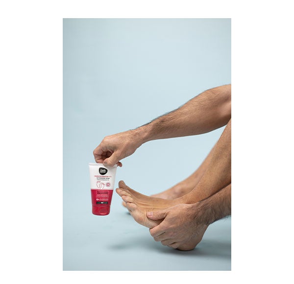 Aplicar manhã e noite com uma massagem sobre os pés limpos e secos insistindo nas partes rachadas e calosas.