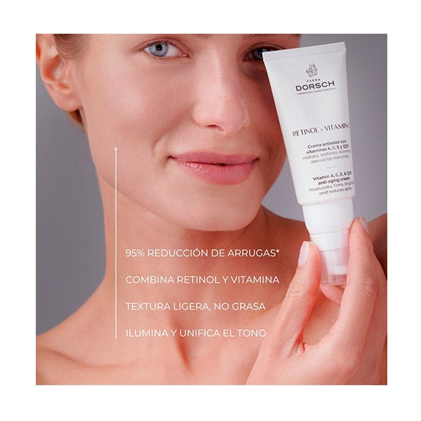Creme facial com os três ativos anti-idade mais potentes: retinol, vitamina C e Q10.