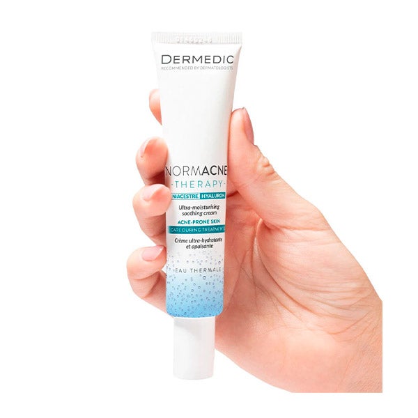 NORMACNE Creme ultra-hidratante e calmante é um produto complementar especial para o cuidado da pele recomendado durante os tratamentos contra a acne.