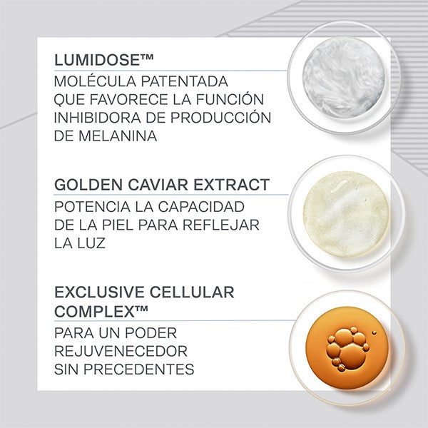 • Su fórmula exclusiva proporciona un efecto transformador que mejora el aspecto de la piel grisácea e iguala el tono brindando una extraordinaria luminosidad.