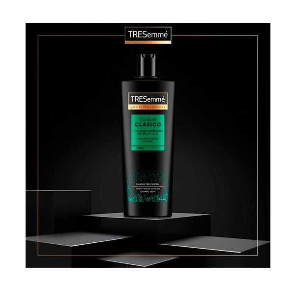 O shampoo TRESemmé Cuidado CLÁSSICO, revitaliza seu cabelo com a ajuda do nosso sistema de Cuidado Clássico, formulado com as Vitaminas B3, B5, B7, C, E, e projetado para purificar e limpar suavemente seu couro cabeludo a cada lavagem. 72 horas como recém-lavado*.