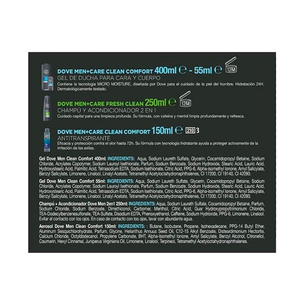 • Gel de Banho Clean Comfort para Corpo e Rosto 400ml & 55ml: Contém a tecnologia Micro-Moisture desenvolvida pela Dove para o cuidado da pele do homem. Hidratação 24 horas. Dermatologicamente testado.
