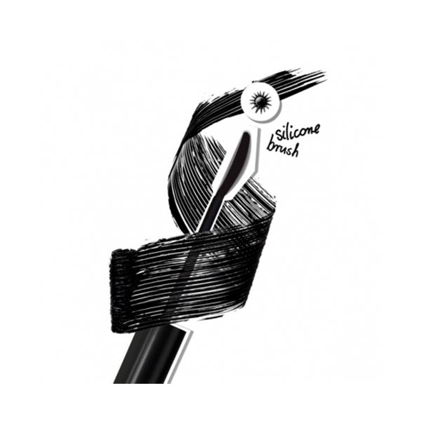 O pincel de silicone separa e curva perfeitamente os cílios.