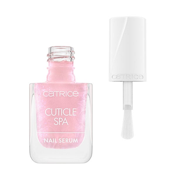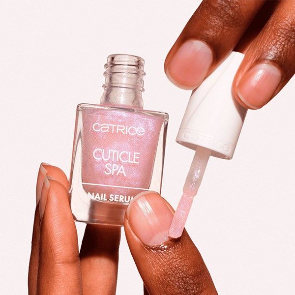 Olá para unhas perfeitamente mimadas! O sérum para unhas Catrice Cuticle Spa nutre profundamente a lâmina ungueal e as cutículas com uma textura leve e não pegajosa. Enriquecido com extrato de mirtilo, vitamina E, óleo de semente de uva, glicerina e aloe vera, é rapidamente absorvido sem deixar resíduos. Sua fórmula rosa leitosa com partículas de purpurina lilás e rosa chama a atenção. O pincel fácil de usar permite uma aplicação precisa sem gotejamento, seja sobre as unhas nuas ou sobre as cutículas enquanto se usa esmalte. Para cutículas nutridas e unhas com aparência forte, este sérum é o seu favorito!