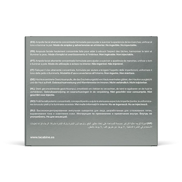 Ampola facial altamente concentrada formulada para ajudar a suavizar a aparência das manchas, uniformizar o tom e iluminar a pele.