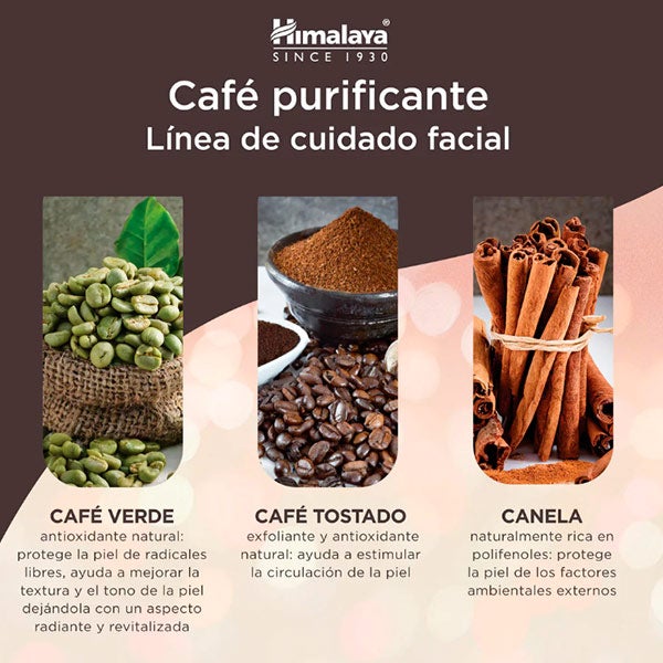 Este limpador facial de ação profunda de Café do Himalaia contém uma mistura eficaz de café Arábica e canela que ajuda a eliminar a sujeira e o sebo. Os grãos de café Arábica torrados e verdes, ricos em potentes antioxidantes, contribuem para uma pele mais radiante e fresca e junto com a canela, ajudam a proporcionar uma sensação de energia. Uma mistura e um aroma perfeitos que deixam a pele clara, energizada e radiante.