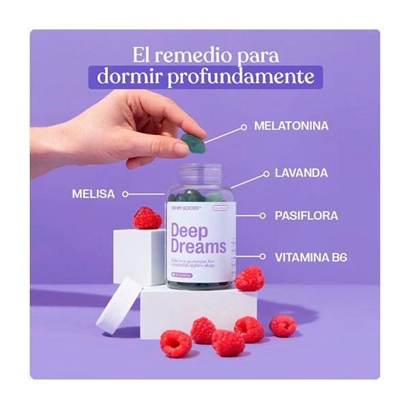 60 deliciosas gomas com sabor a framboesa. Contém ingredientes específicos como a melatonina, passiflora, melissa, lavanda e vitamina B6 para ajudá-lo a dormir tranquilamente.