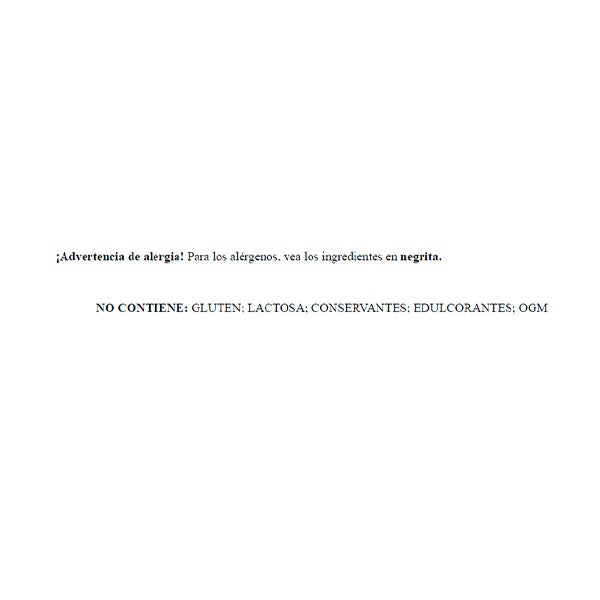 NO CONTIENE: GLUTEN; LACTOSA; CONSERVANTES; EDULCORANTES; OGM