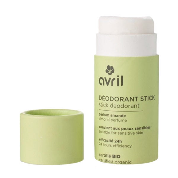 Formulado com óleo de coco orgânico, o desodorante em barra orgânico certificado Avril limita o odor de transpiração durante 24 horas e deixa um agradável aroma de amêndoa.