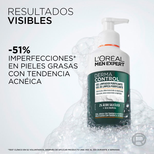 L'OREAL PARIS Men Expert Derma Control Gel de Limpeza Purificante é um gel de limpeza purificante especialmente formulado para a pele masculina.
