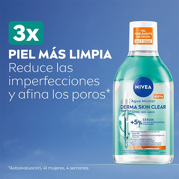 A Água Micelar Derma Skin Clear com 5% Sérum e Complexo de Aminoácidos reduz as imperfeições e controla o brilho. Remove a maquiagem, as impurezas, a sujeira e os filtros SPF em poucas passadas.