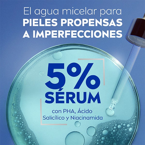 Respeitosa com a pele, sem necessidade de esfregar. Compatibilidade com a pele e os olhos dermatológica e oftalmologicamente comprovada. Água Micelar Derma Skin Clear com 5% SÉRUM + COMPLEXO DE AMINOÁCIDOS Reduz as imperfeições e controla o brilho.