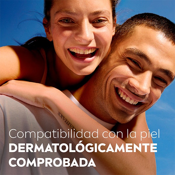Também é adequado para pele sensível. Este fluido solar ultraleve protege a pele saudável do exterior contra os raios UVA/UVB e dos efeitos da Luz Visível de Alta Energia, como o envelhecimento prematuro da pele.