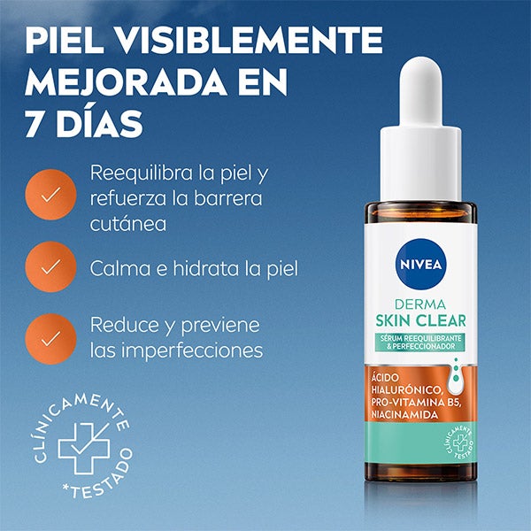 Quer recuperar o controle sobre sua pele? NIVEA Derma Skin Clear Sérum Reequilibrante & Perfeccionador é especificamente formulado para peles propensas a imperfeições.