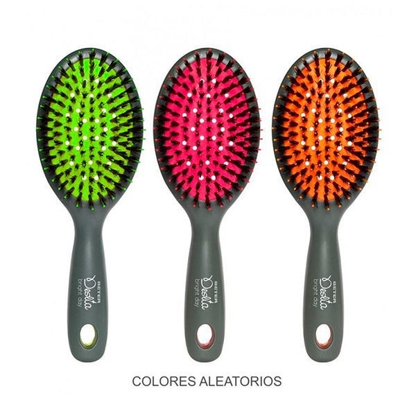 Conta com cerdas de javali que proporcionam um brilho natural extraordinário ao cabelo. Ao escovar, distribuem-se os óleos naturais que o couro cabeludo produz, da raiz até as pontas.