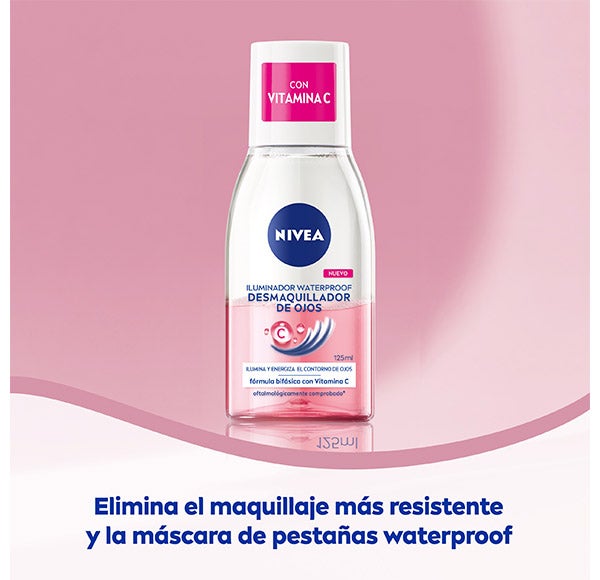 NIVEA Removedor de Maquiagem para Olhos Iluminador Vitamina C este removedor bifásico elimina eficazmente a maquiagem e a máscara de cílios à prova d'água, sem necessidade de esfregar. Sua fórmula com Vitamina C deixa o contorno dos olhos energizado e luminoso. O produto também é adequado para usuários de lentes de contato. Aprovado dermatológica e oftalmologicamente.