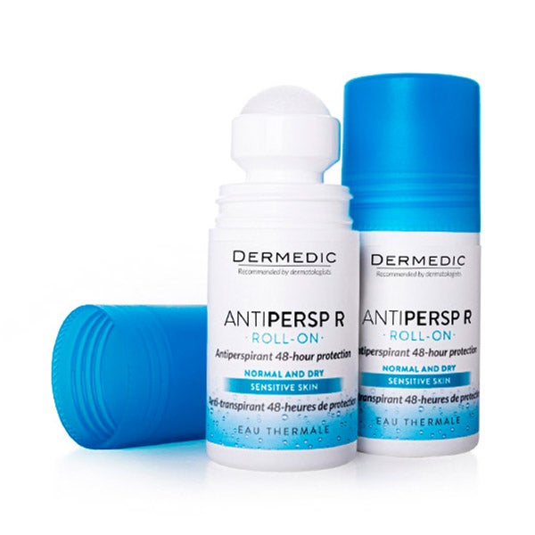 ANTIPERSP R Antitranspirante 48H com água termal e alantoína, formulado para reduzir e regular eficazmente a transpiração, proporcionando proteção por 48 horas.