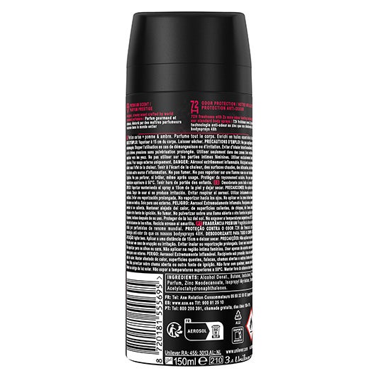 Com óleos essenciais. Desfrute das nossas Fragrâncias Premium elaboradas por perfumistas de renome mundial. Com 72 horas de frescor graças à nossa fórmula melhorada sem sais de alumínio e com 2X mais tecnologia de Zinco que o nosso body spray padrão, para alcançar uma maior proteção contra o mau odor e mantê-lo fresco por mais tempo.