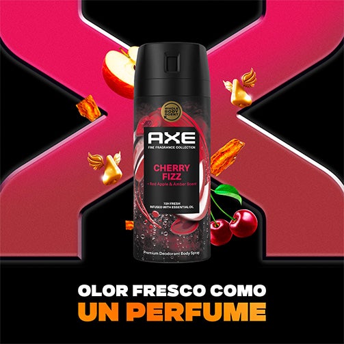 O desodorante em spray Axe Cherry Fizz para homem cheira luxuosamente como um perfume.