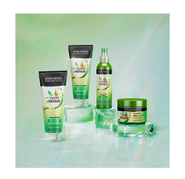 Os penteados, o acúmulo de produtos e as influências ambientais podem danificar o cabelo e reduzir o efeito dos ingredientes nutritivos. Com óleo de semente de cannabis sativa e nutritivo abacate, a linha Detox & Repair de John Frieda libera seu cabelo de impurezas indesejadas e cria a base perfeita para uma reparação visível e uma revitalização imediata.