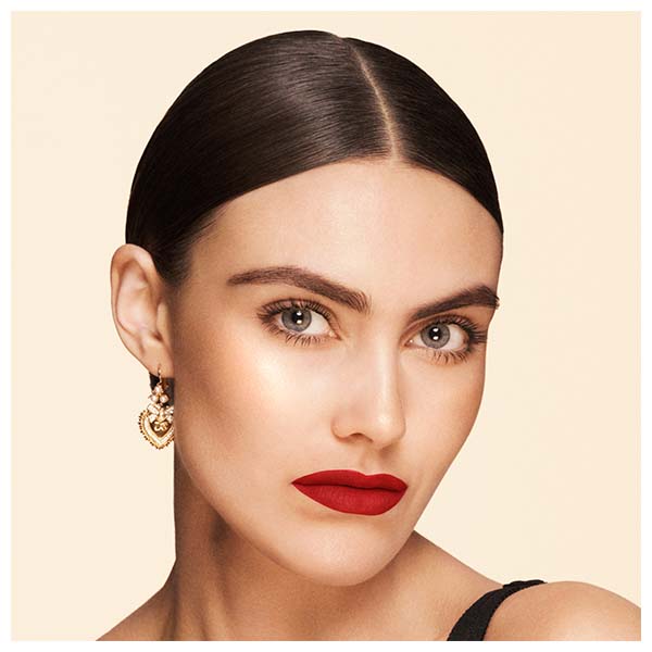 Utilize o lado plano do pincel para uma cobertura uniforme e a extremidade precisa para definir pontos estratégicos do seu rosto, como o arco do cupido ou o arco da sobrancelha.