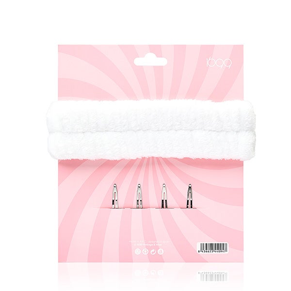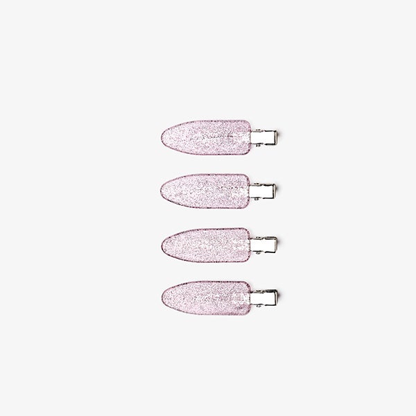 Inclui uma tiara suave tipo laço em tecido aveludado, ideal para prender o cabelo com total conforto, e 4 clips com acabamento glitter rosa, especialmente desenhados para não marcar nem danificar o cabelo.