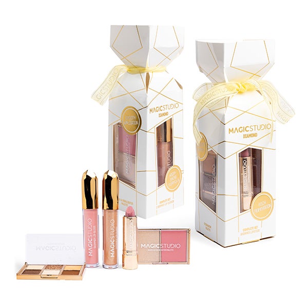 Explore a Coleção Diamond de Magic Studio com o Conjunto de Presente Full Face. Mergulhe na elegância e sofisticação enquanto descobre uma paleta de sombras de olhos de 6 cores, um versátil duo de blush e iluminador, dois brilhos labiais e um luxuoso batom. Cada produto encarna os característicos acabamentos brilhantes e metálicos da Coleção Diamond, proporcionando as ferramentas para criar sem esforço um look cativante e refinado de rosto completo.
