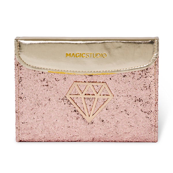 Encontre seus produtos de maquiagem favoritos na maxi-carteira da coleção Diamond. Baseada em tons derivados do prateado e do dourado, você poderá combinar sombras matte, metalizadas e glitter para criar looks para qualquer ocasião. Complemente seus olhos com a variedade de batons, blushes, iluminadores e bronzeadores incluídos.