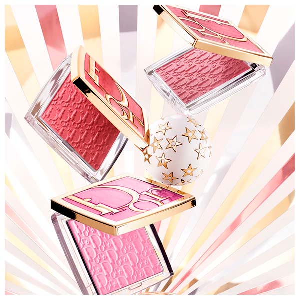 Para as festas de fim de ano, Rosy Glow, o blush Dior de culto, é apresentado em um estojo dourado em edição limitada. Revela três novos tons luminosos, 810 Starry Pink, 830 Fiery Red e 850 Starry Mauve, todos adornados com um motivo Oblique salpicado de estrelas.