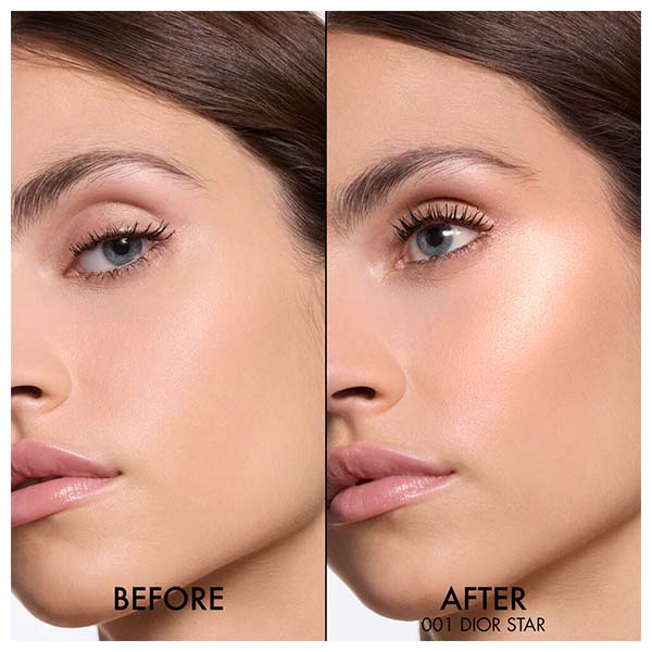Para as festas de fim de ano, os pós iluminadores Dior Forever Glow Luminizer são apresentados em um estojo em edição limitada adornado com a faixa Christian Dior e um motivo cannage salpicado de estrelas. Revela um novo tom com um brilho dourado: 001 Dior Star.