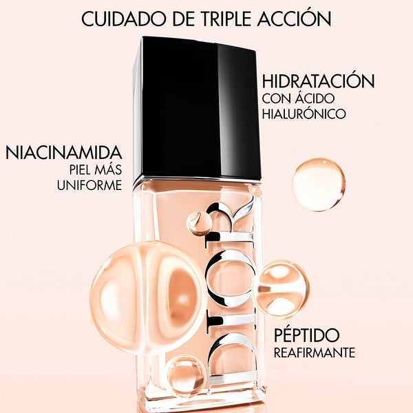 Dior Forever Skin Glow, a base de maquiagem luminosa com 24 horas¹ de duração que combina alta perfeição de maquiagem e um tratamento de tripla ação. Sua textura ultrafina se funde com a pele para unificar o tom e revelar uma luminosidade natural, mesmo sob os holofotes.