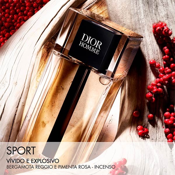 A bergamota de Reggio e o limão são um autêntico chamado à frescura. Suas notas suculentas e cítricas potencializam imediatamente a trilha firme da nova Dior Homme Sport. A estas notas de saída se adicionam o resinoso e limonado elemi. Chispeantes e picantes, as bagas rosas acompanham as notas quentes e ambarinas do perfume.