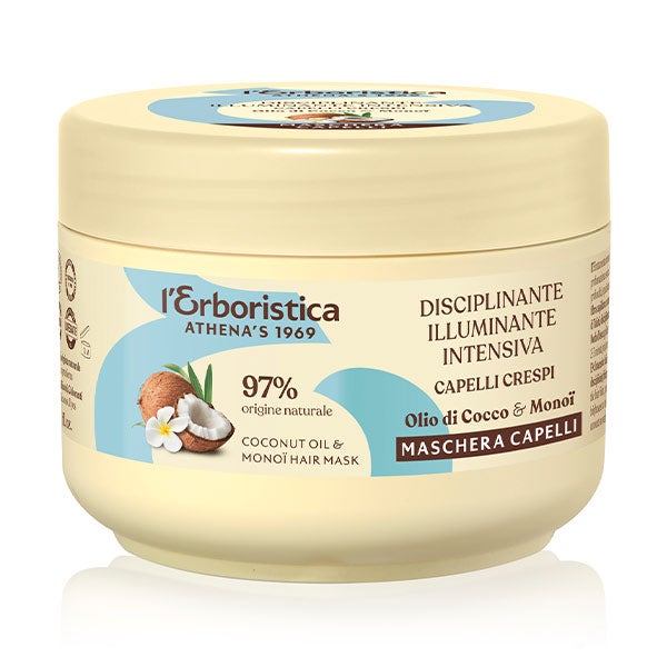 Máscara com Óleo de Coco e Óleo de Monoi, para cabelos extraordinariamente macios e brilhantes.