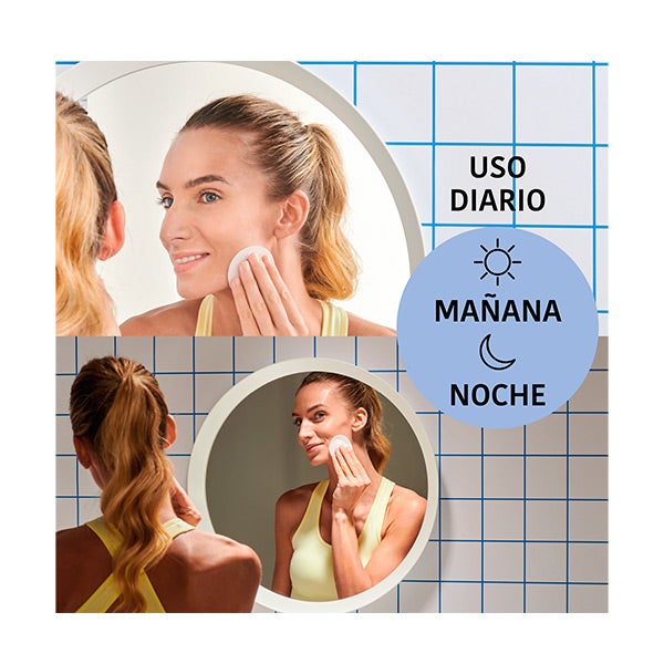 Deslizar o disco sobre a pele limpa usando a parte com relevo para eliminar impurezas.
