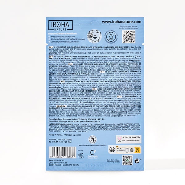 Aqua / Agua /Eau, Agua Hippophae Rhamnoides, Butilenglicol, Arginina, 1,2-Hexanediol, Ácido Cítrico, Gluconolactona, Extracto de Centella Asiática, Extracto de Hoja de Hamamelis Virginiana, Extracto de Hoja de Chamaecyparis Obtusa, Extracto de Melaleuca Alternifolia, Extracto de Fruta de Vaccinium Angustifolium, Propanediol , laurato de poliglicerilo-10, pantenol, alantoína, goma xantana, lactato de mentilo, perfume/fragancia
