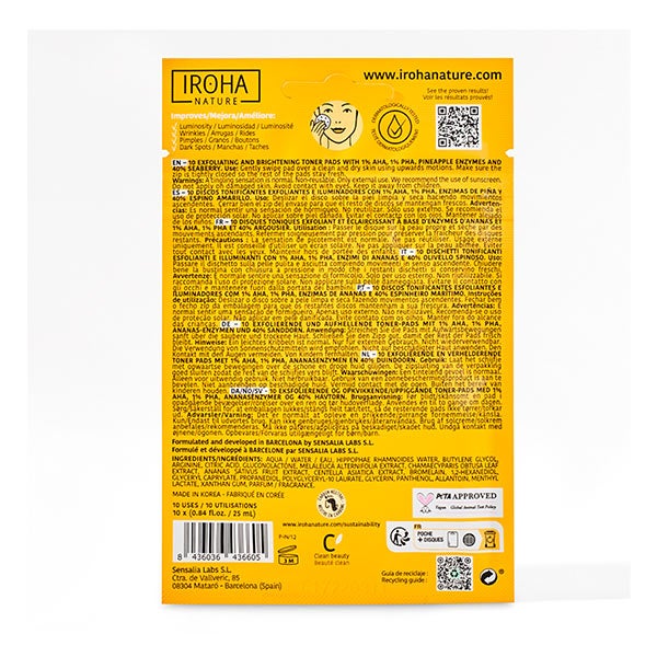 Aqua / Water /Eau, Hippophae Rhamnoides Water, Butylene Glycol, Arginine, Citric Acid, Gluconolactone, Melaleuca Alternifolia Extract, Chamaecyparis Obtusa Leaf Extract, Ananas Sativus Fruit Extract, Centella Asiatica Extract, Bromelain, 1,2-Hexanediol, Glyceryl Caprylate, Propanediol, Polyglyceryl-10 Laurate, Glycerin, Panthenol, Allantoin, Menthyl Lactate, Xanthan Gum, Parfum /Fragrance