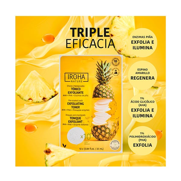 Sua fórmula clean contém 98% de ingredientes certificados de origem natural. Entre seus ativos principais está a Enzima de Abacaxi, que funciona como um potente esfoliante da mesma forma que atua como anti-inflamatório.