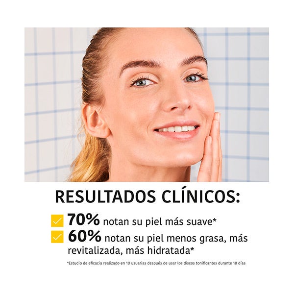 Deslizar o disco sobre a pele limpa usando a parte com relevo para eliminar impurezas.