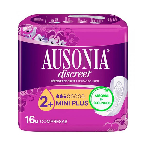 Absorventes para perdas de urina Ausonia Discreet Miniplus são ideais para perdas abundantes.