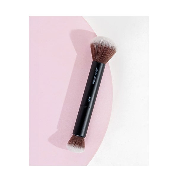 Apresentamos o pincel de pós e polidor de dupla extremidade Brushworks nº 6: a ferramenta definitiva para levar sua rotina de maquiagem a novos patamares. Este pincel, elaborado por especialistas, é projetado para oferecer versatilidade e conforto, com um design de dupla extremidade que inclui um pincel para pós e um pincel para polir em um único e elegante design. A combinação de um pincel para pós e um pincel polidor garante uma aplicação perfeita e uma mistura sem esforço dos seus produtos favoritos em creme, líquidos e em pó.