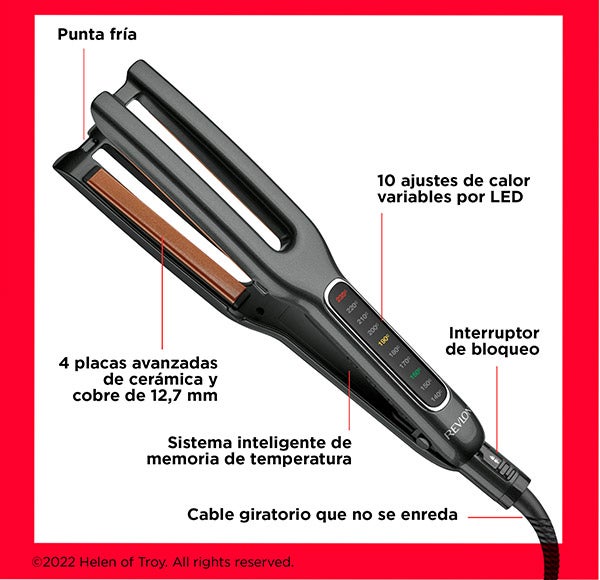 -Tecnologia avançada de cerâmica de cobre para uma transferência de calor uniforme superior e um estilo mais rápido que resulta em um deslizamento ultrassuave e um alisamento 2 vezes mais rápido em uma única passagem.