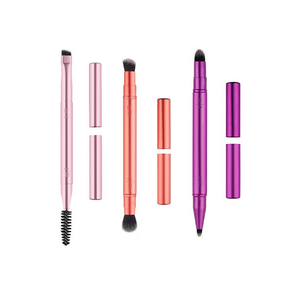Os pincéis Double Time são fáceis de limpar com nosso gel de limpeza Brush + Sponge da Real Techniques. Também são 100% livres de crueldade animal e feitos com cerdas sintéticas UltraPlush.