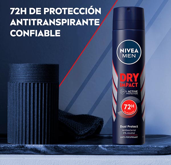 Porque la vida real no ocurre en el laboratorio, NIVEA MEN Dry Impact Spray Desodorante Antitranspirante sale del laboratorio con un test tecnológico, completamente nuevo, que pone a prueba nuestro desodorante con el test más difícil: LA VIDA REAL, que es incontrolable, impredecible, excitante.