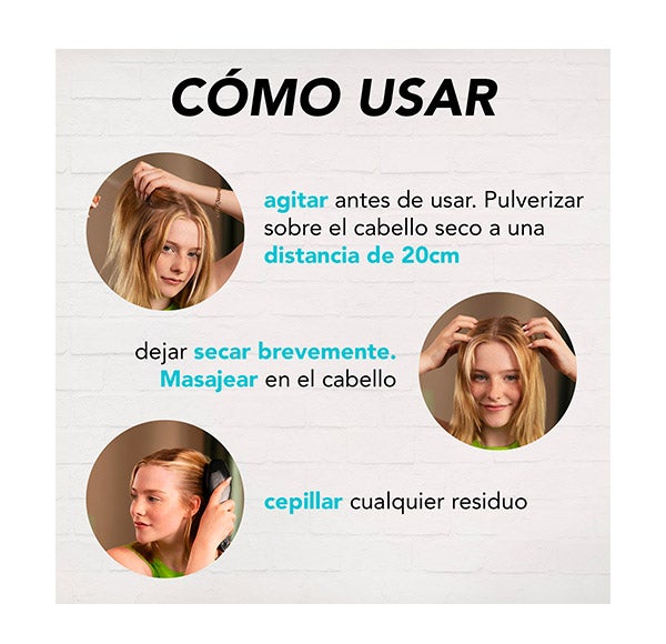 1 dia extra de frescor sem lavar o cabelo porque este shampoo a seco não deixa resíduos visíveis após a escovação.