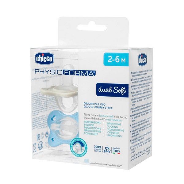 O Chupeta Chicco Physio Dual Soft, projetado para crianças de 2 a 16 meses, oferece uma dupla suavidade para um conforto único. Sua forma exclusiva treina as funções vitais da boca, favorecendo um crescimento saudável e um desenvolvimento oral adequado. Combina um escudo fino e compacto com o inovador bico PhysioForma, fabricado em 100% silicone, um material higiênico, indeformável e prático para o uso.