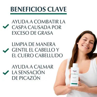 Eucerin DermoCapillaire SHAMPOO ANTICASPA é projetado especificamente para a caspa oleosa e para a dermatite seborreica.