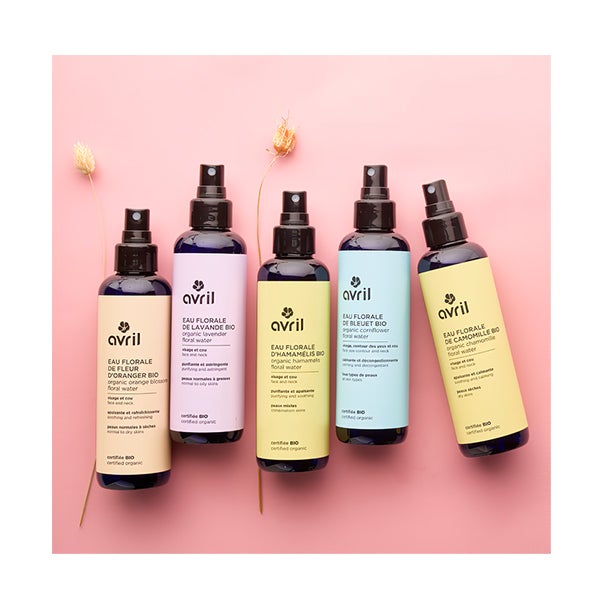 Um produto, 2 usos: para um efeito refrescante pela manhã, a água floral de Camomila orgânica certificada da Avril é sua melhor aliada.