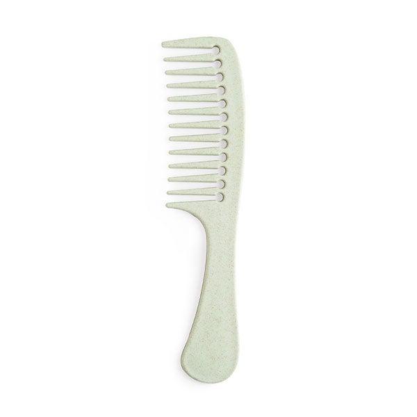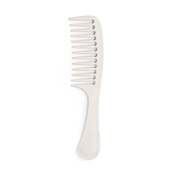 Pente ecológico biodegradável, desembaraçador graças à sua espessura entre dentes.